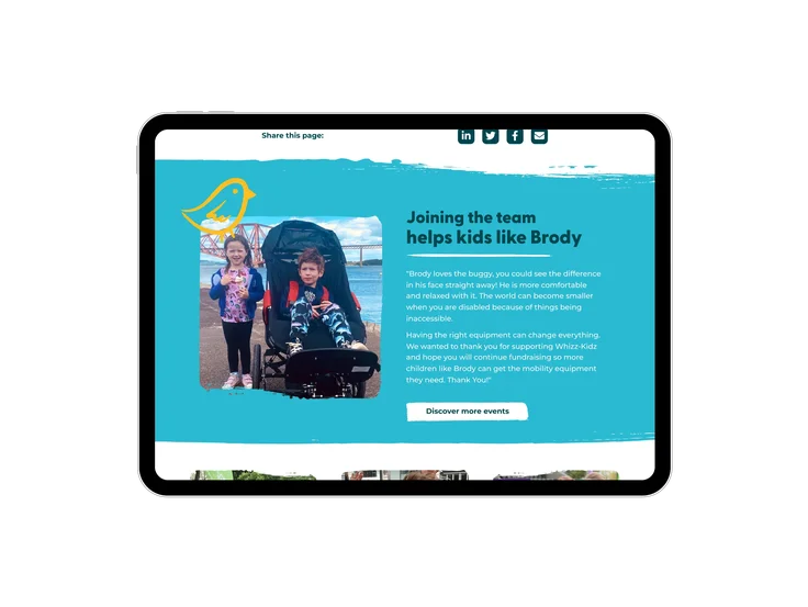 As part of a full rebrand, Whizz Kidz needed a completely new website that aligned with its bold new identity while solving key digital challenges. With a new strategy focused on expanding access to high-quality wheelchairs and mobility equipment, Whizz Kidz needed a website that could do more - one that was: